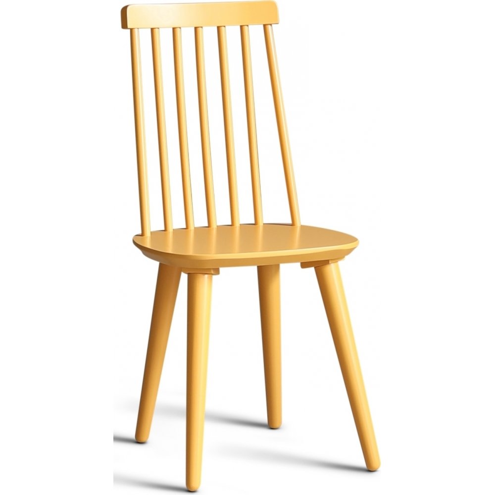 Matgrupp: Runt bord i Ek / Vit med 4 st gula Pinnstolar + Stolsdyna