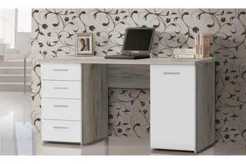 Harland Skrivbord 120 cm med 5 Förvaringslådor, Vit / Vit Högglans