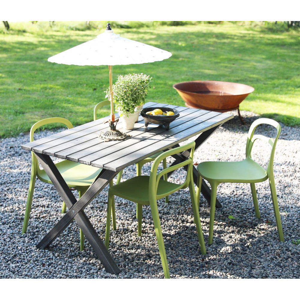 En nätt matgrupp till uteplatsen från Skånska Möbelhuset. Saltö runt matbord i teak med 4 st stapelbara Nordanå stolar i grön formgjuten plast. En matgrupp i harmoni där möblerna går snyggt ihop och skapar en helhet som är svåröverträffad. Passar lika bra i uterummet som på altanen.