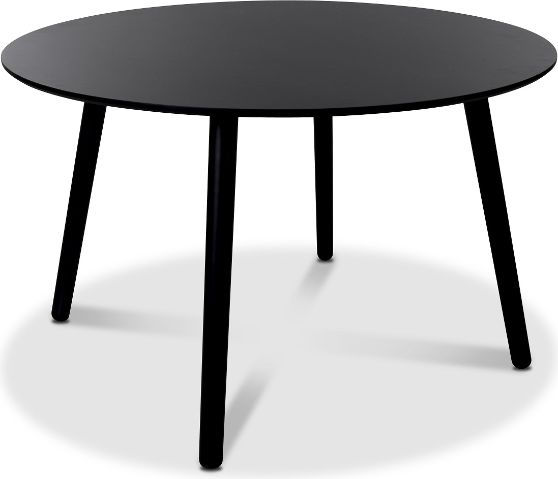Matgrupp från Skånska Möbelhuset, Rosvik matbord 120 cm i diameter. Medföljer 4 st matchande Carisma sammetstolar i mörkgrön sammet med svarta ben.