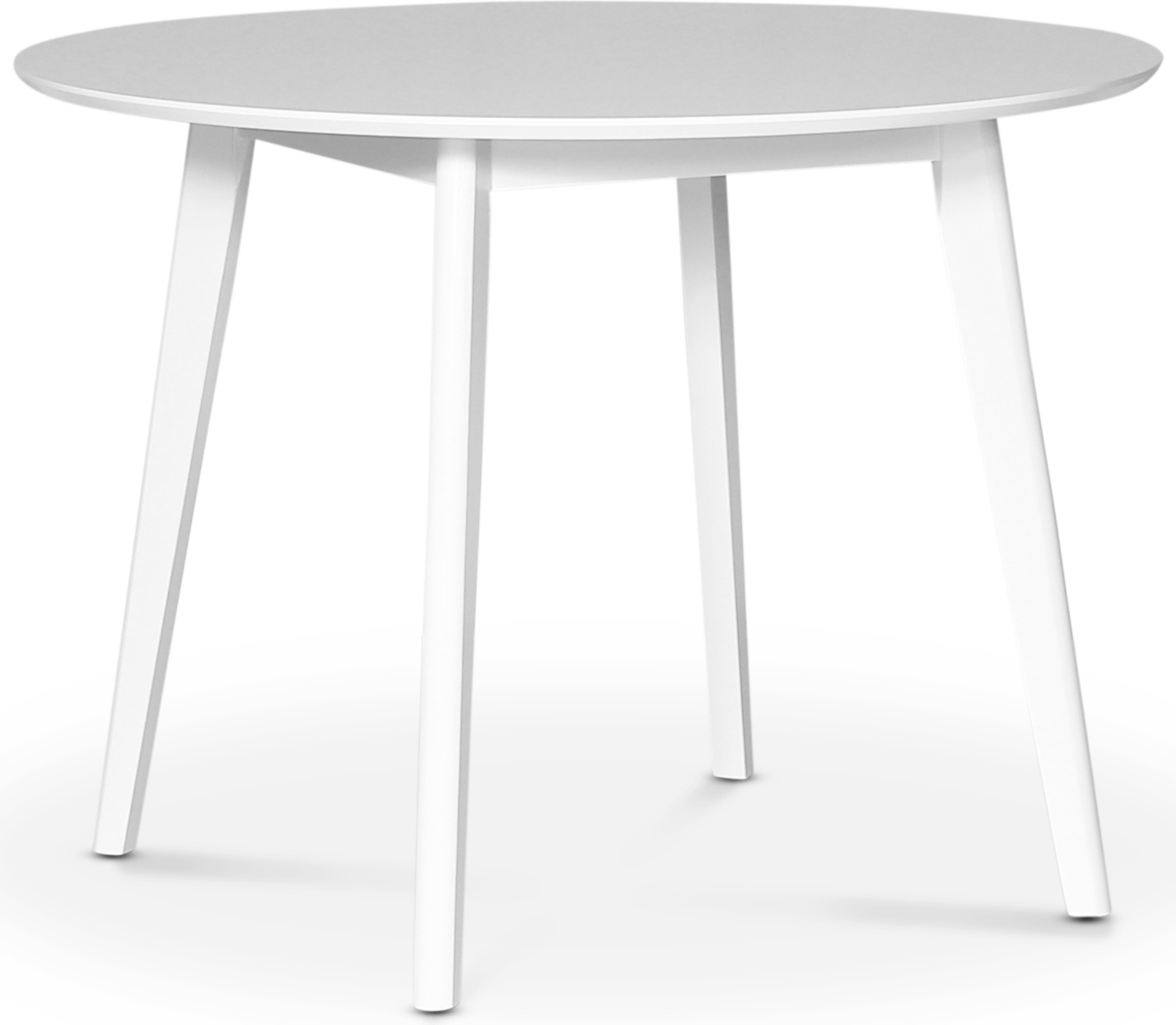 Sandhamn matgrupp Klassiskt utförande. Stilrent runt matbord med vitlackade ben och bordsskiva.