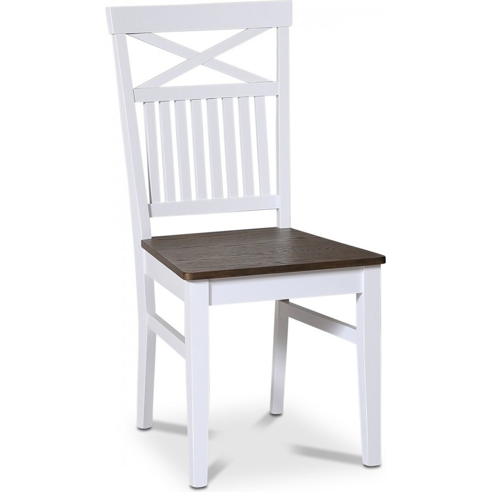 Skagen matgrupp; runt matbord Ø120 cm - Vit / brunoljad ek med 4 st Skagen stolar (Kryss i ryggen) med brunoljad eksits: