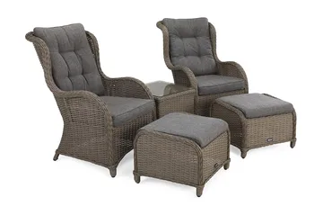 Tacksamma och nästan underhållsfria är utemöbler och balkongmöbler i plast och konstrotting. De tål regn och slask, även om de blir smutsiga är de lätta att rengöra med tvättsvamp och såpa. Mångar gånger tål de även robust rengöring med högtryckstvätt.