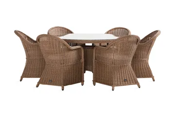 Bland materialen till möblerna hittar du givetvis bord och stolar i trä. Träslagen kan variera från lyxigt acasiaträ och teak till traditionell ek och furu. Vidare har vi även möbler i rotting eller slitstark och uv-tålig konstrotting. Här finns också praktiska bord och klaffbord i glas och lackad metall, tåliga för väder och vind. Ett annat nytt och populärt konstruktionsmaterial för en utemöbel är fibercement. Ett mycket robust och tåligt material som åldras med värdighet.