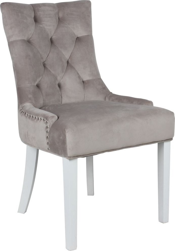 Inklusive 4 st Tuva matstolar i beige sammet med kromade nitar och ring-handtag i ryggen. Matstolaen har vitlackade träben. Denna serie stolar är en av Trendrums mest populära.